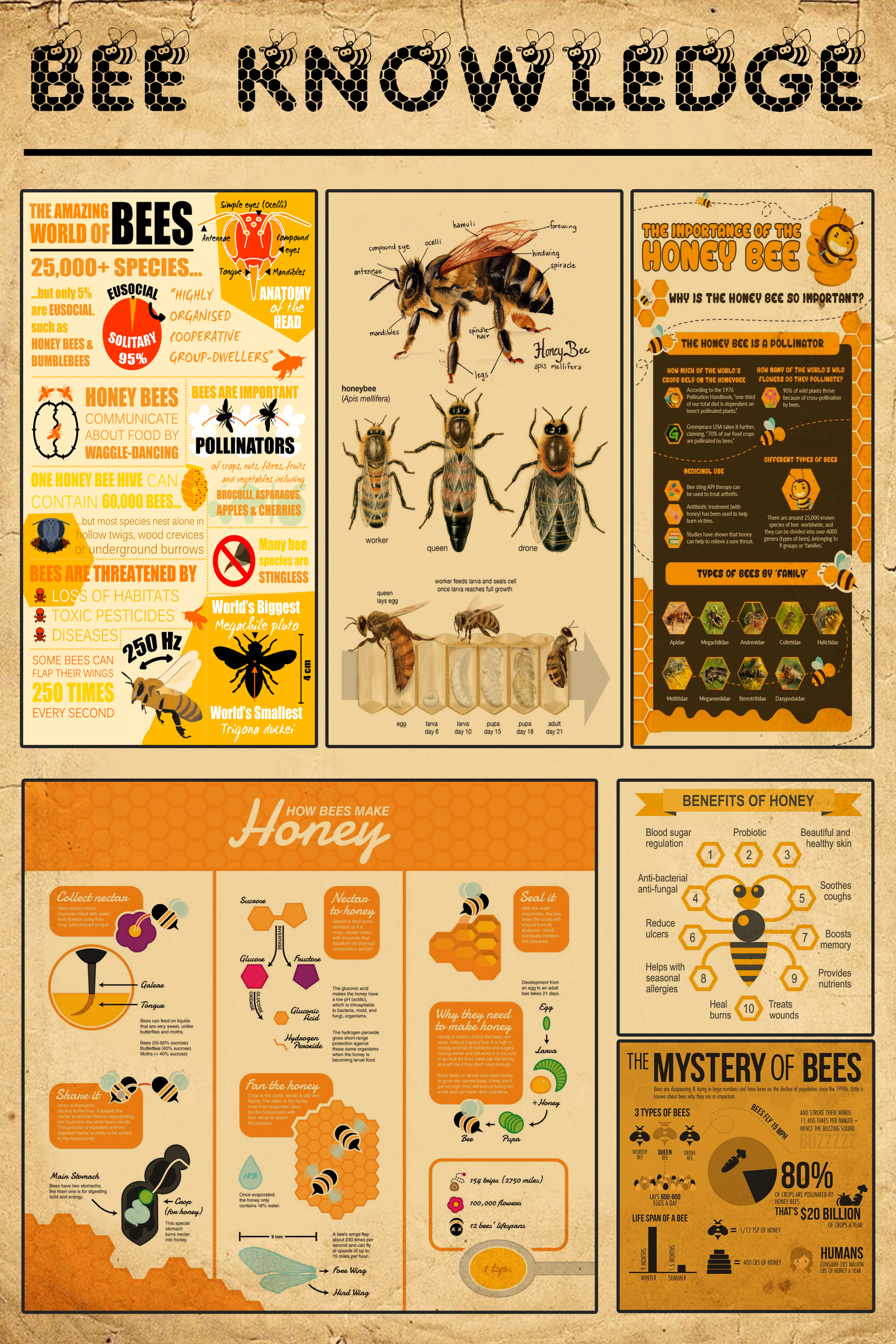 Bee Knowledge Poster Bee Anatomy Honey Bee Facts How Bees Make Honey Benefits Guide Wall Art