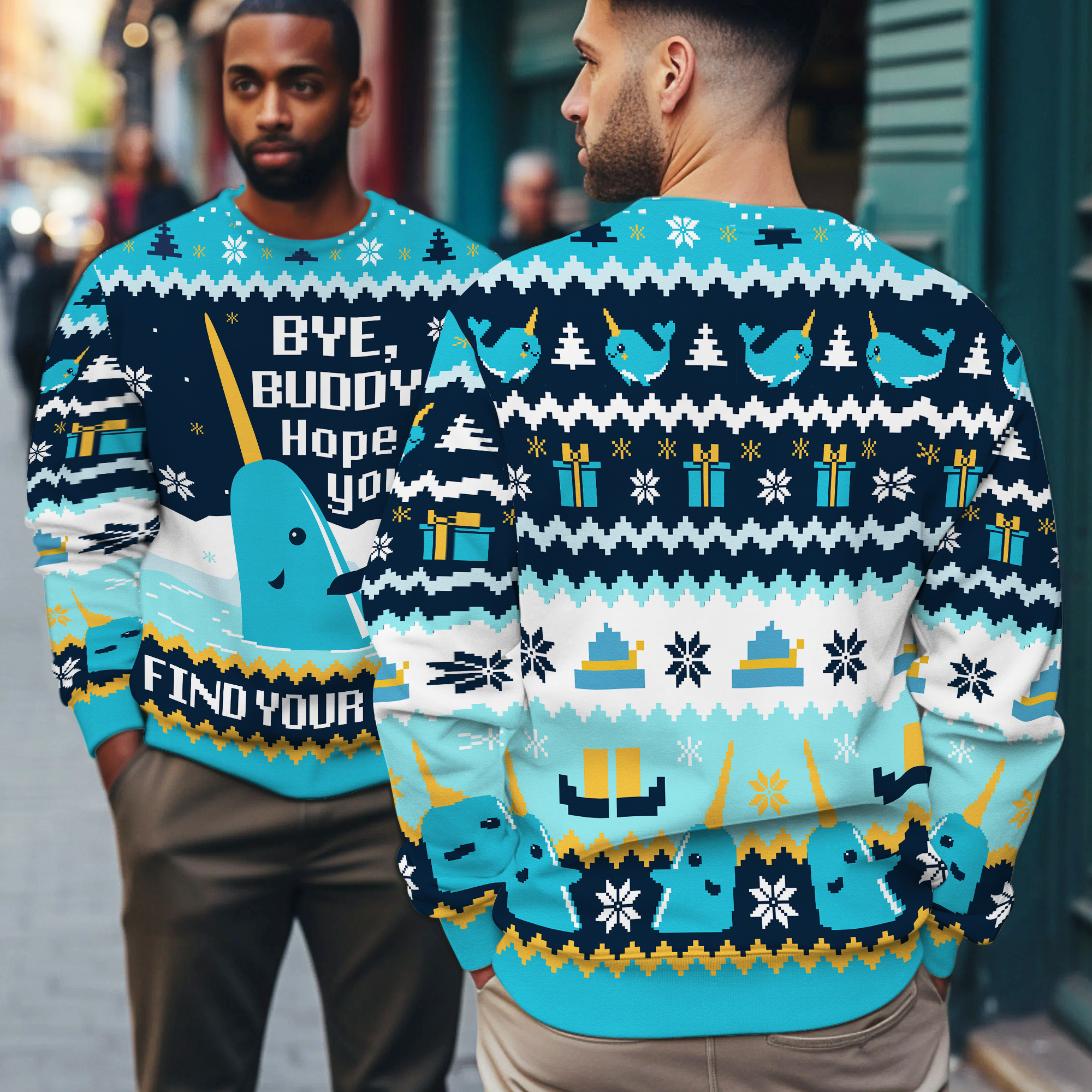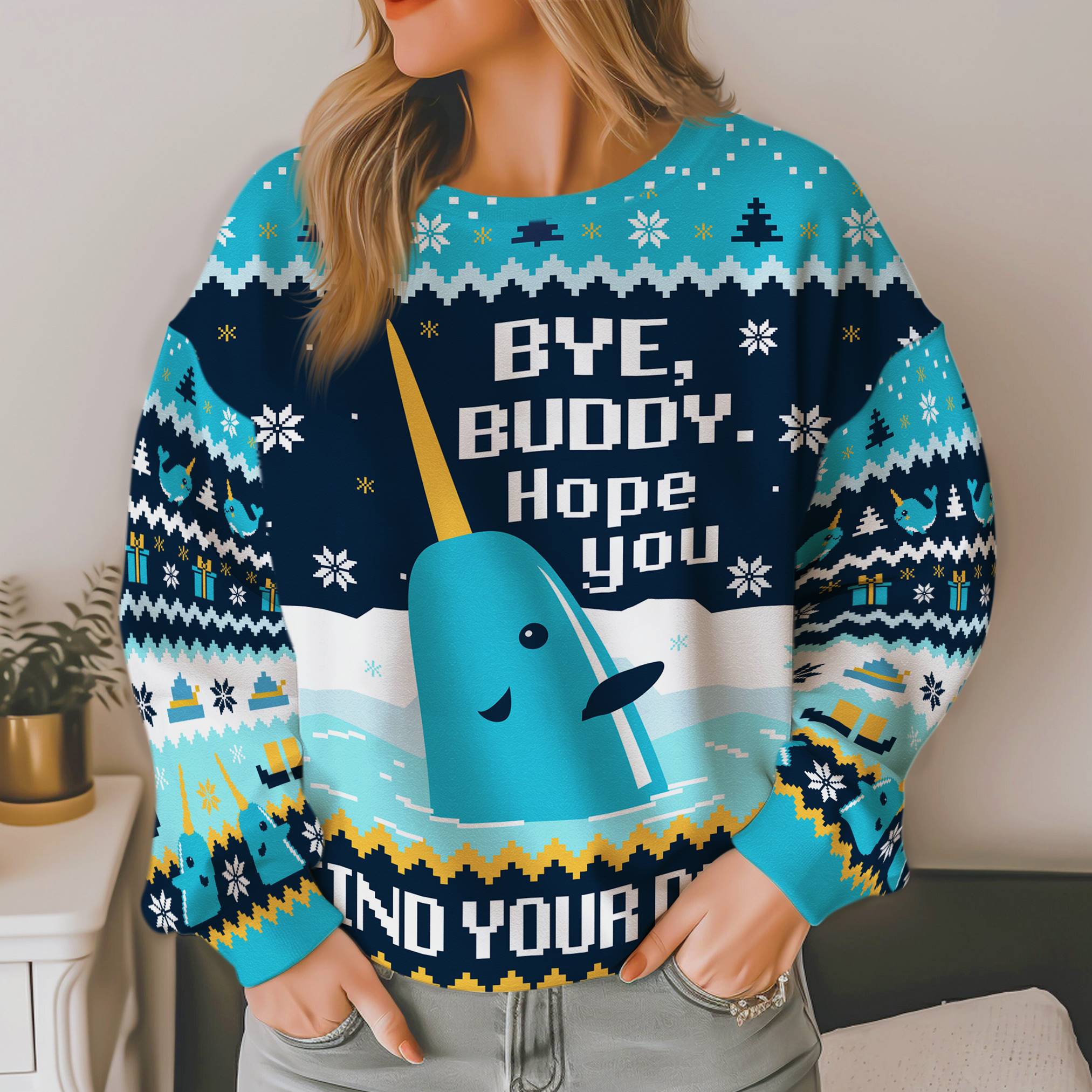Bye Buddy Hope You Find Your Dad Narwhal Funny Ugly Xmas Sweater