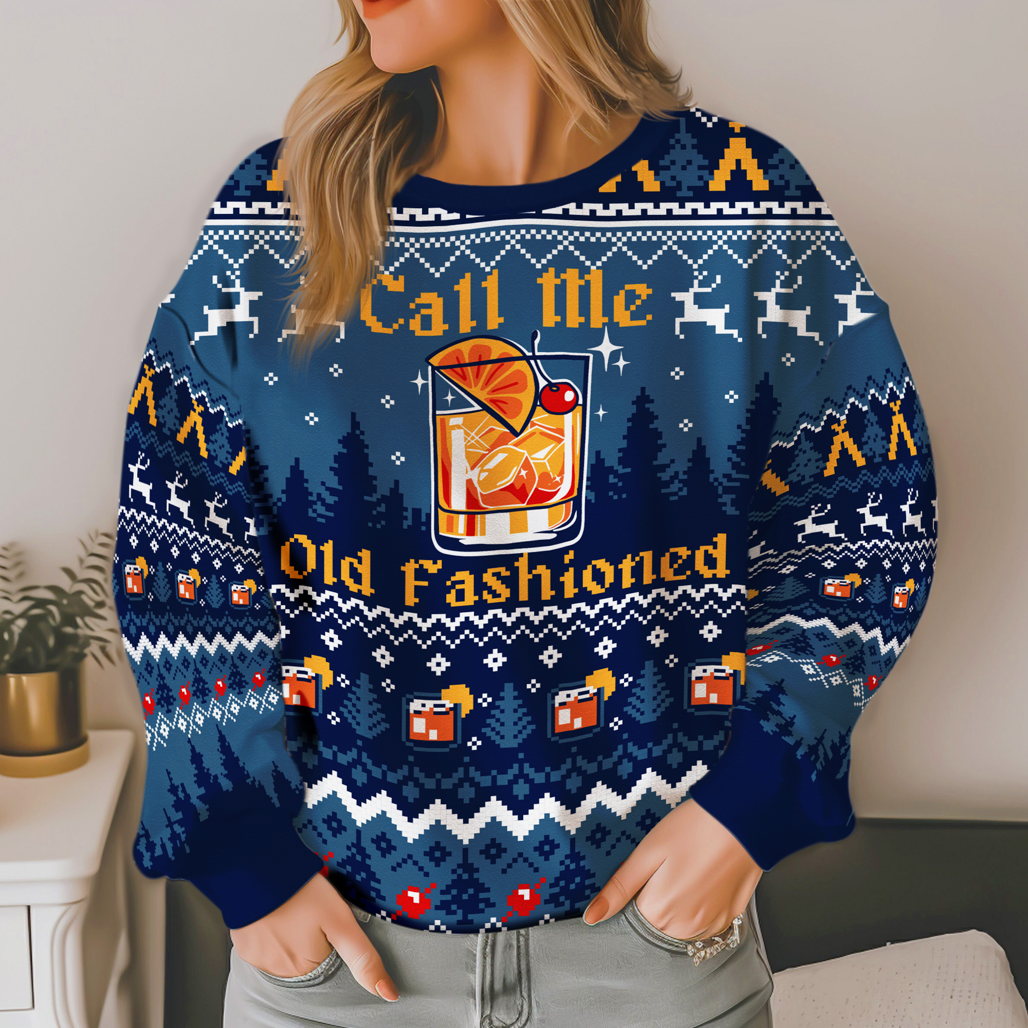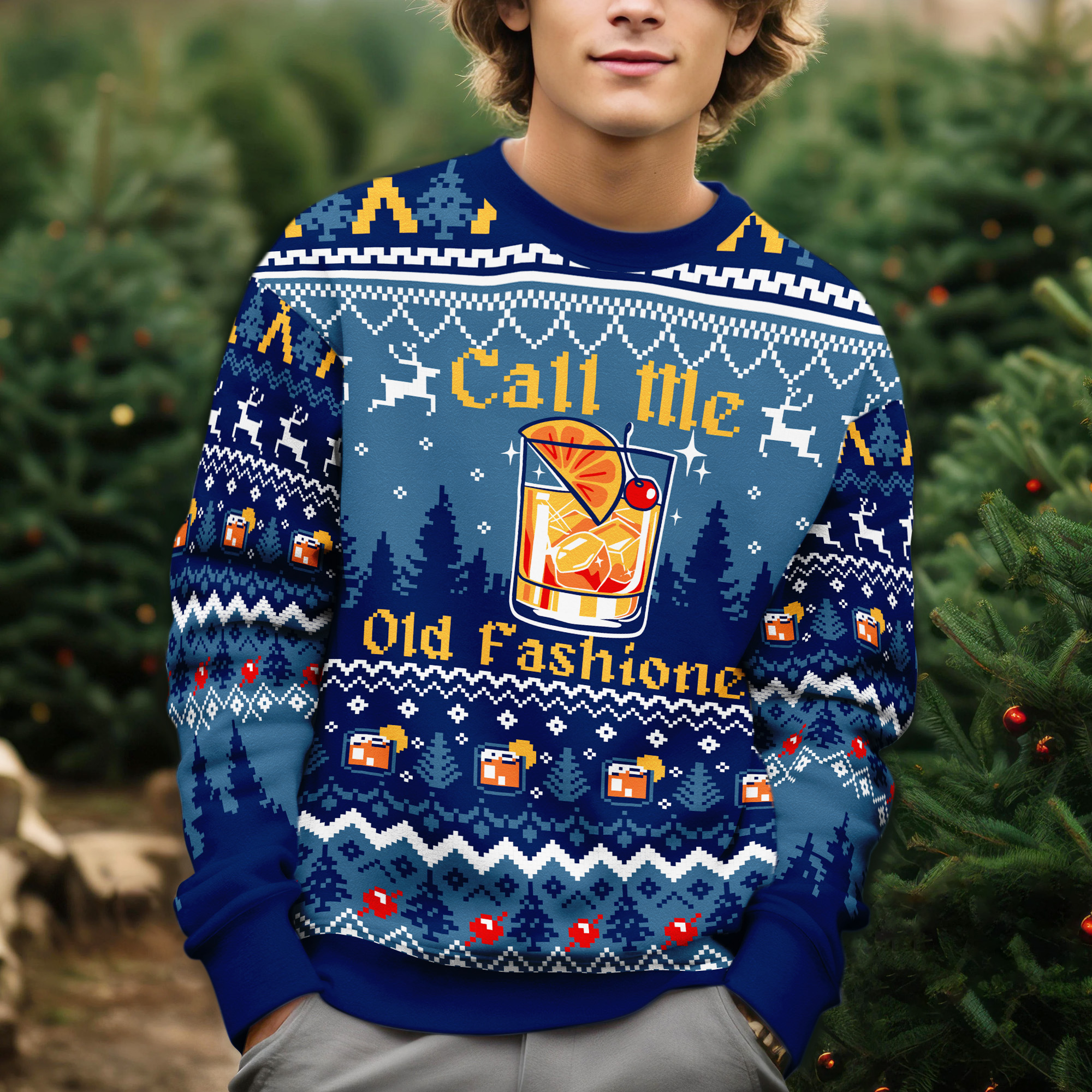 Call Me Old Fashioned Cocktail Glass Bourbon Whiskey Ugly Xmas Sweater