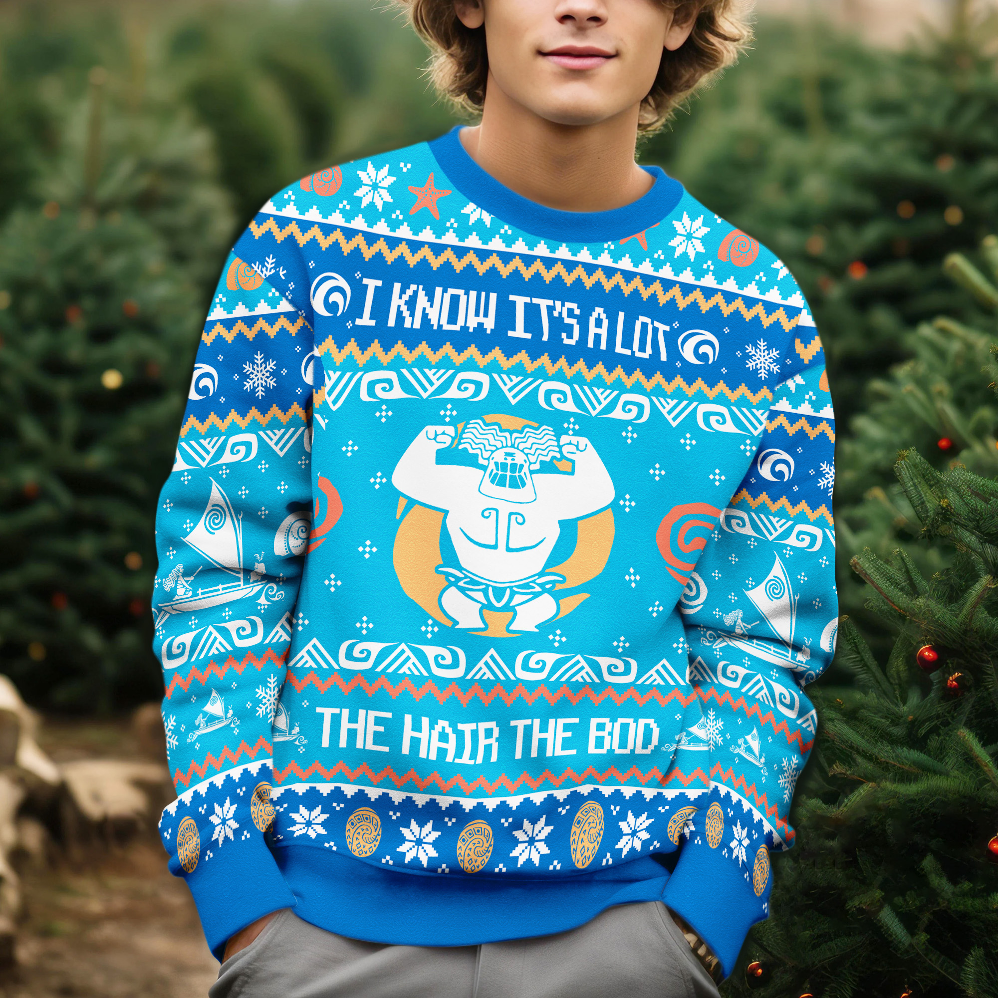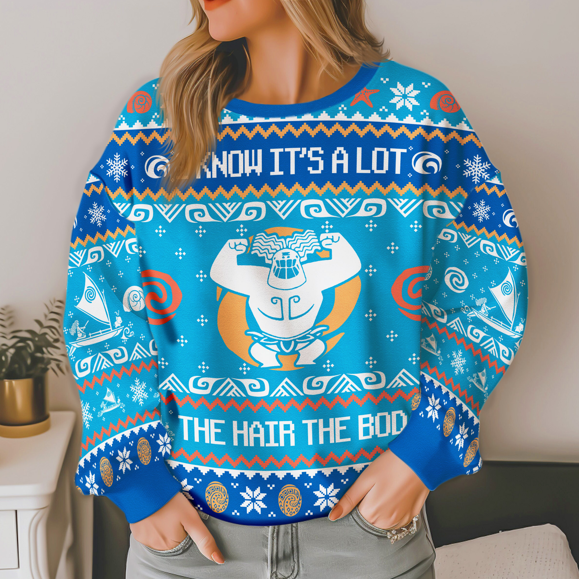 Disney Moana Maui Quote The Hair The Bod Ocean Waves Tribal Symbols Ugly Xmas Sweater