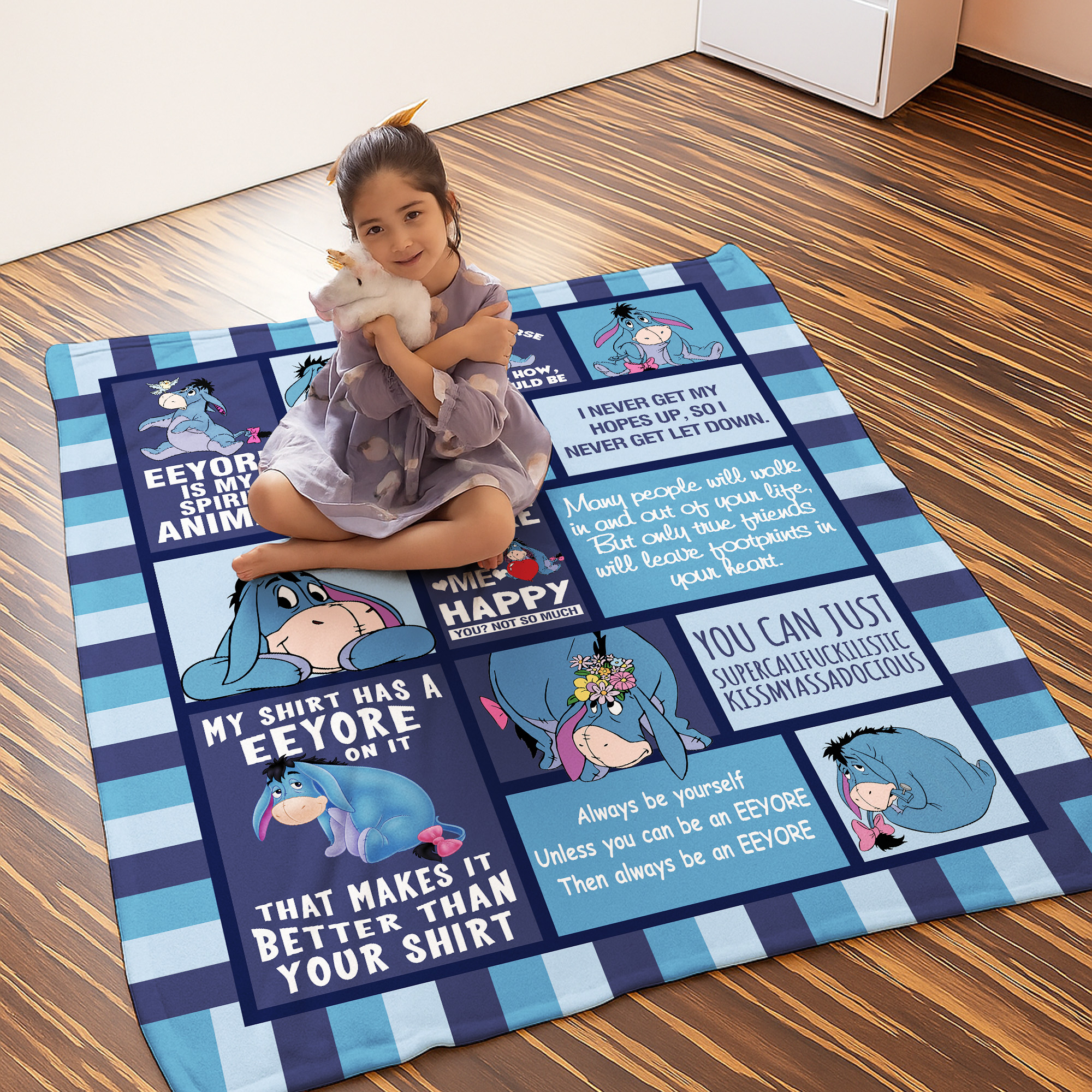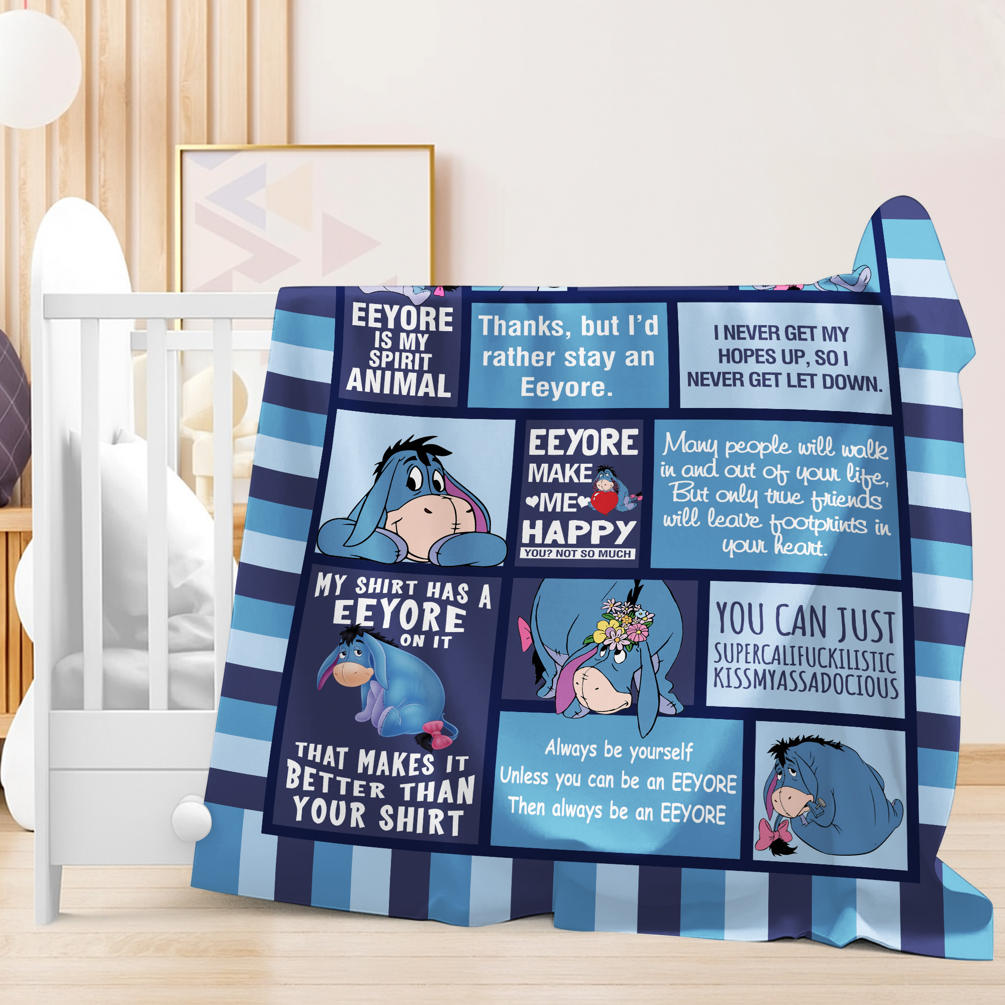 Eeyore Quotes Winnie the Pooh Disney Blue Patchwork Fleece Blanket