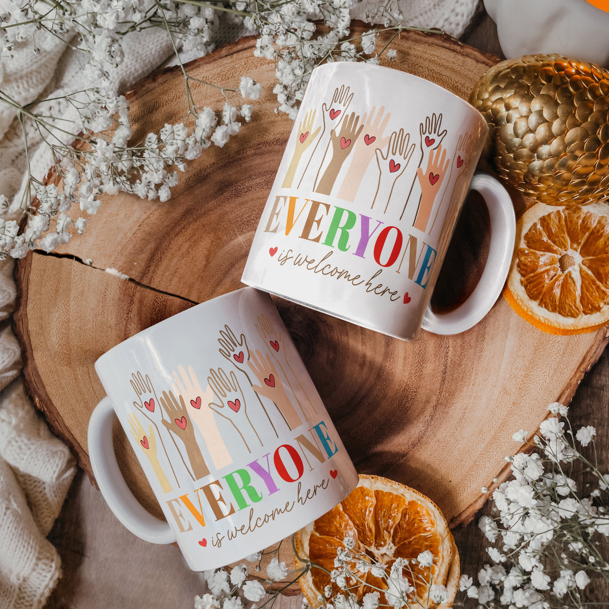 Everyone Is Welcome Here Mugs – Diversity & Inclusion Coffee