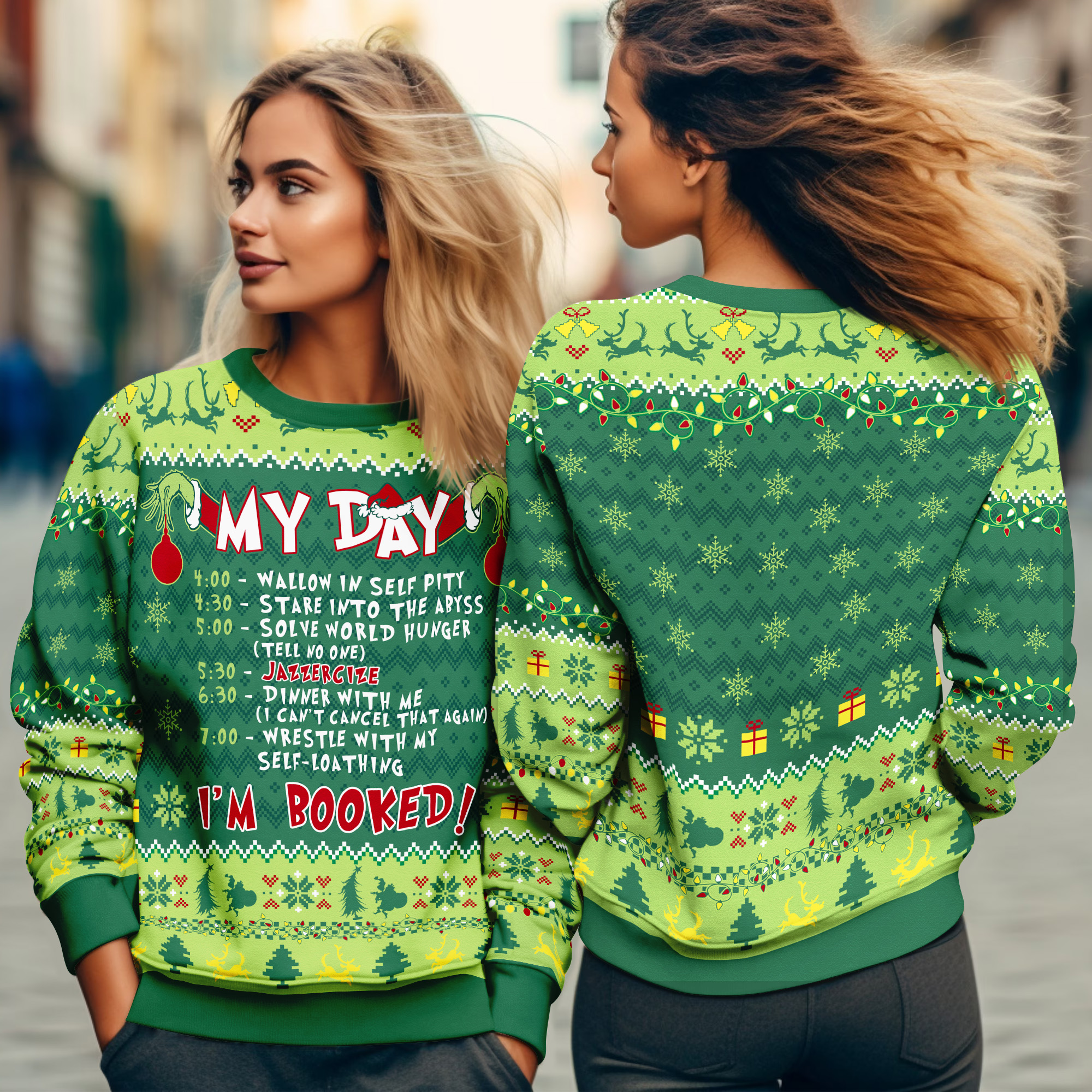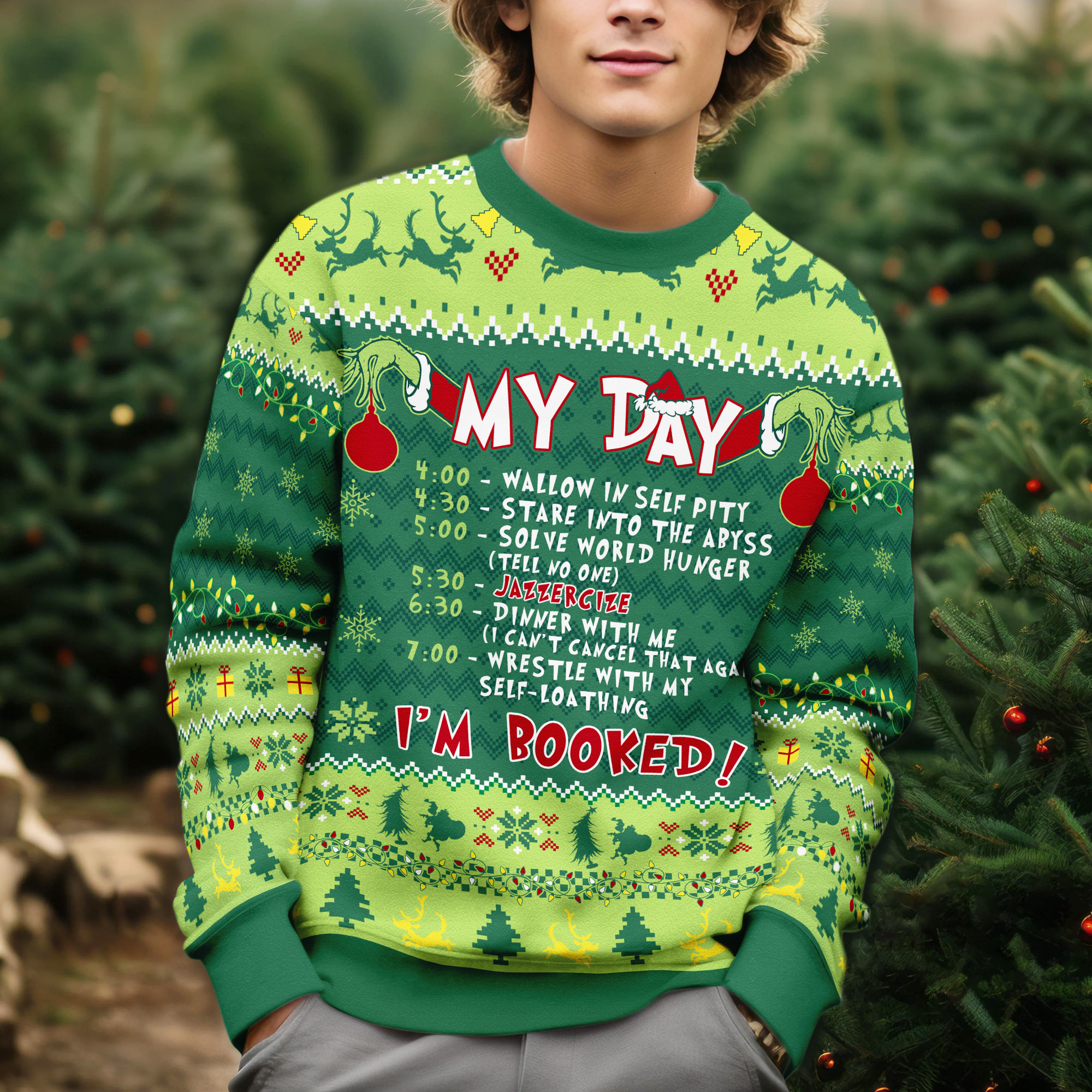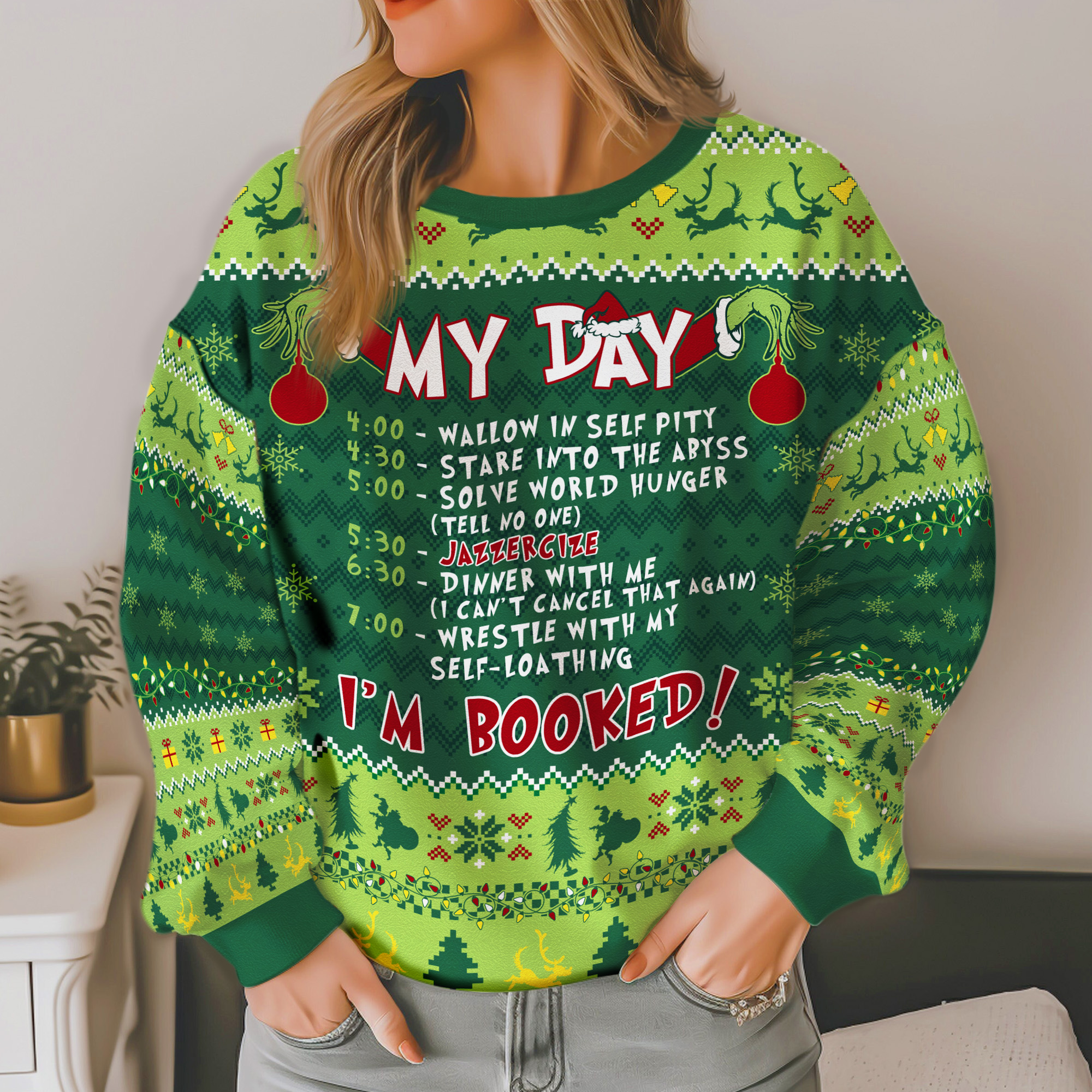 Grinch My Day I’m Booked Funny Schedule Ugly Xmas Sweater