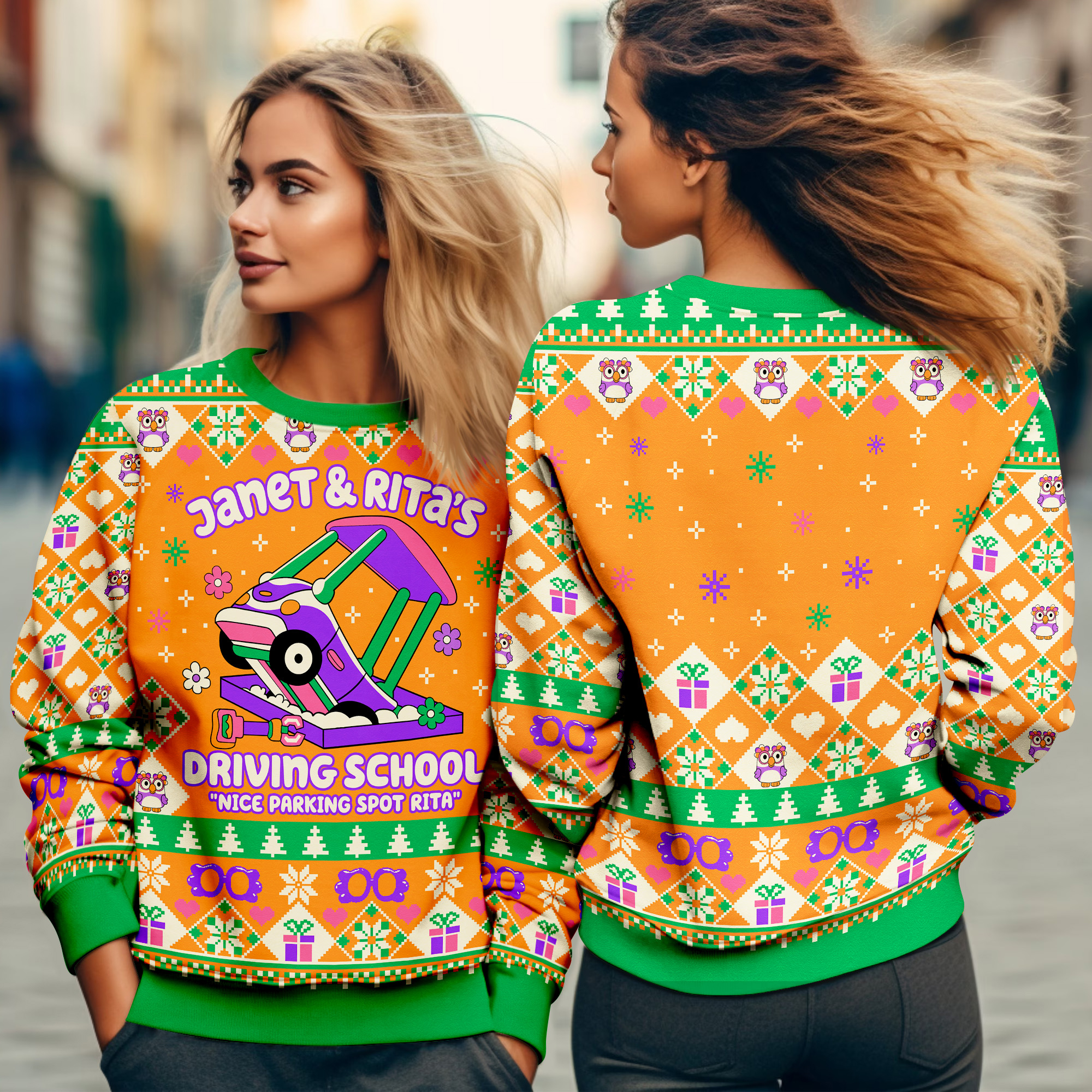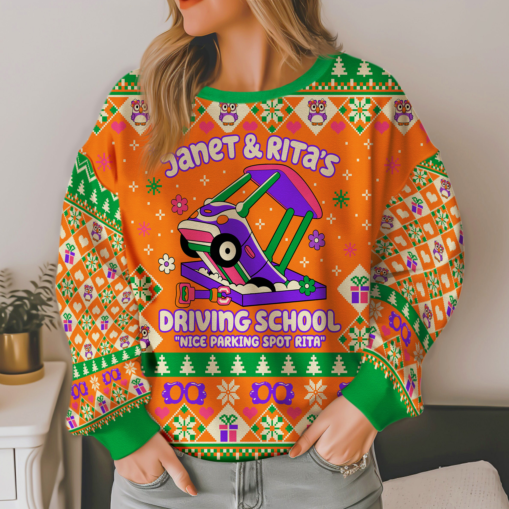 Janet & Ritas Driving School Bluey Grannies Nice Parking Spot Rita Funny Ugly Xmas Sweater