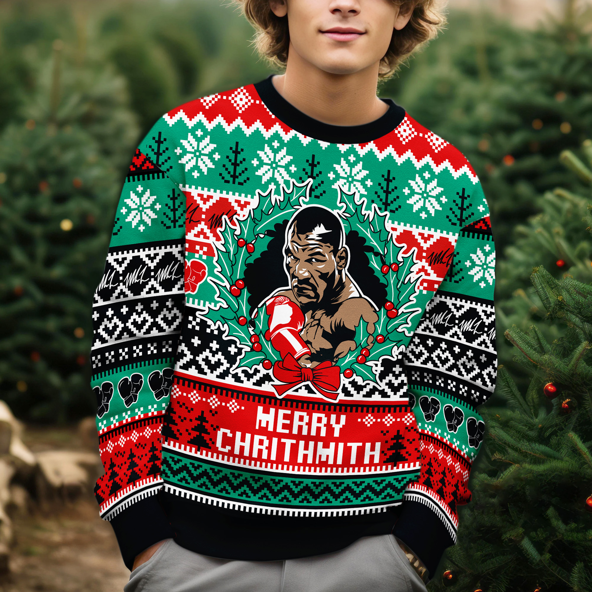 Merry Chrithmith Mike Tyson Funny Boxer Wreath Holiday Ugly Xmas Sweater
