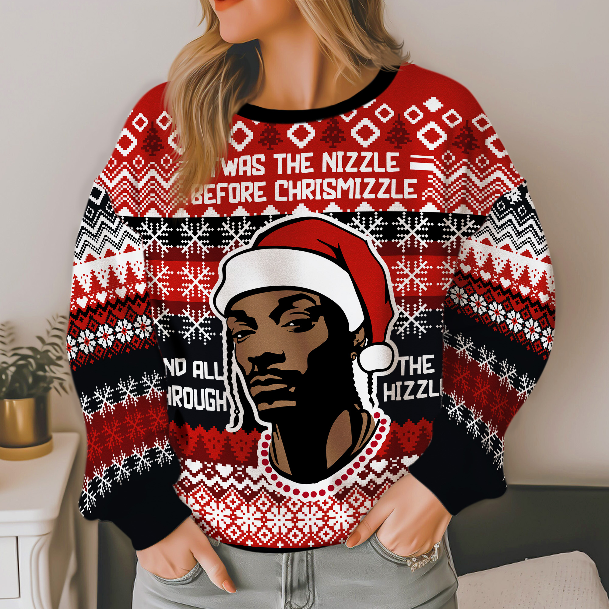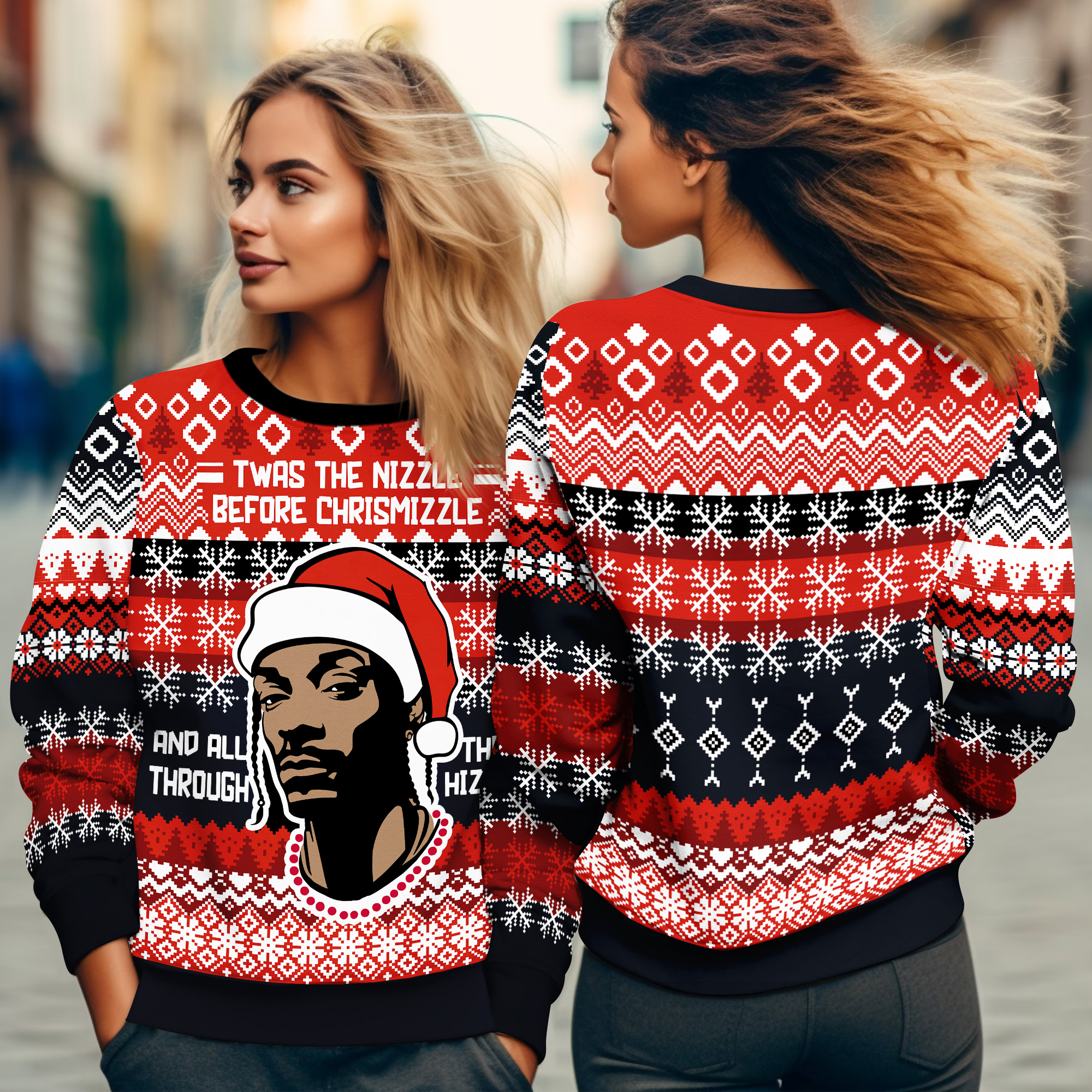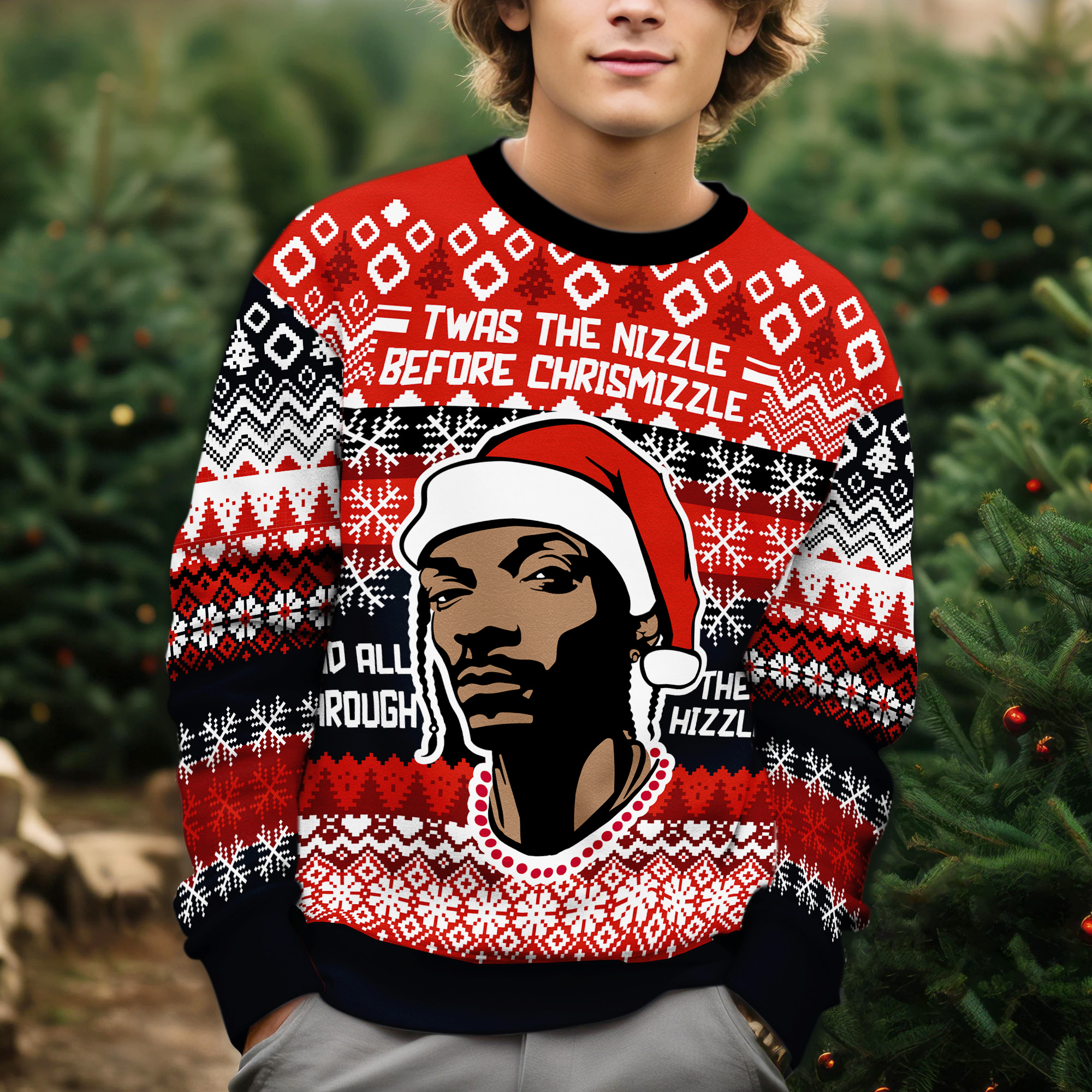 Twas The Nizzle Before Chrismizzle Rap Parody Santa Hat Funny Hip Hop Holiday Ugly Xmas Sweater