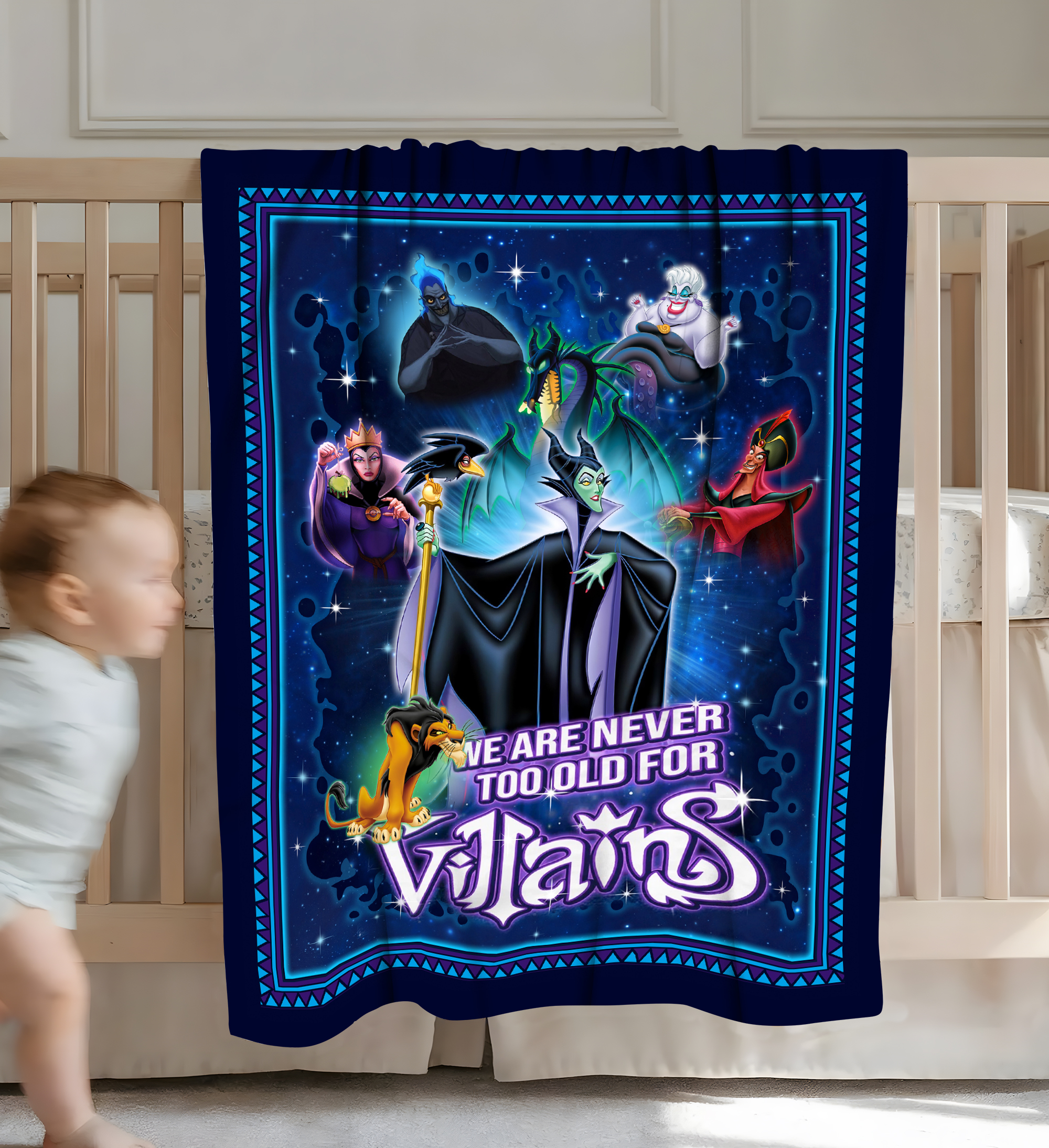 We Are Never Too Old For Villains Maleficent Ursula Evil Queen Jafar ScarFleece Blanket